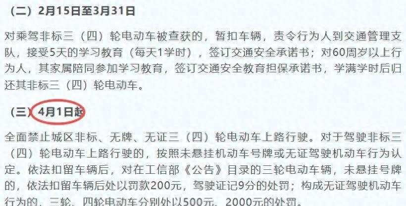 4月1日起,电动车、三轮、四轮上路“3禁5必查”!车主注意